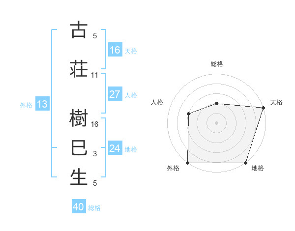 古荘 樹巳生さんを姓名の画数から五運を鑑定