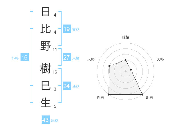 日比野 樹巳生さんを姓名の画数から五運を鑑定