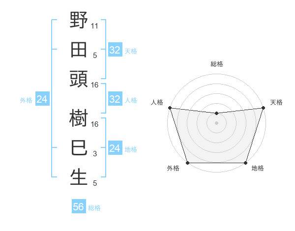 野田頭 樹巳生さんの外格は24画の5点!