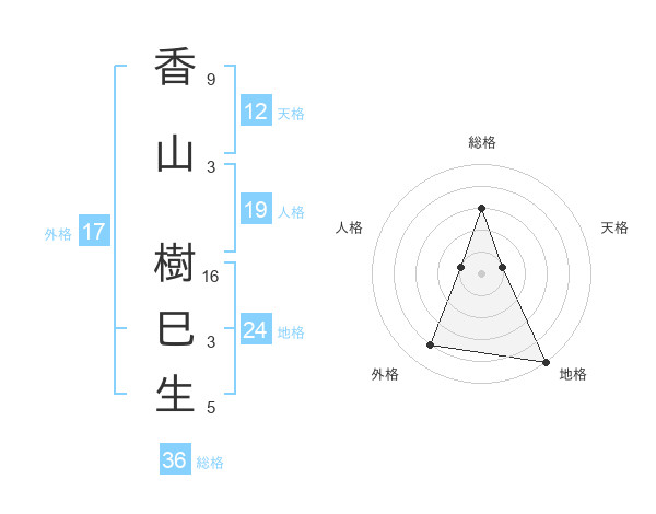 香山 樹巳生さんを姓名の画数から五運を鑑定