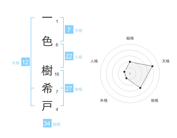一色 樹希戸さんを姓名の画数から五運を鑑定