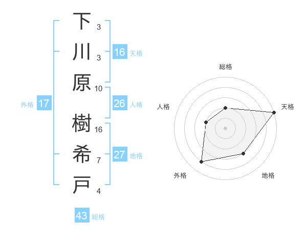 下川原 樹希戸さんを姓名の画数から五運を鑑定