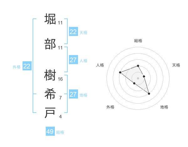堀部 樹希戸さんを姓名の画数から五運を鑑定