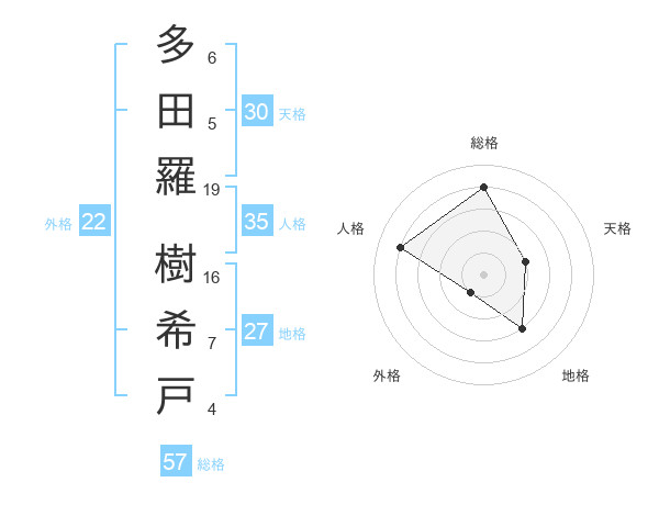 多田羅 樹希戸さんを姓名の画数から五運を鑑定