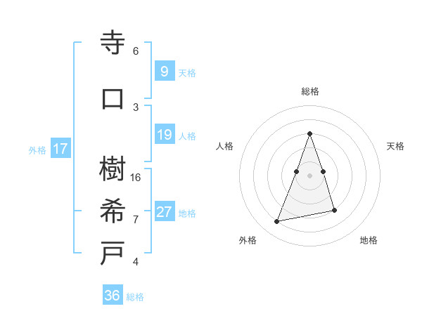 寺口 樹希戸さんの地格は27画の3点!