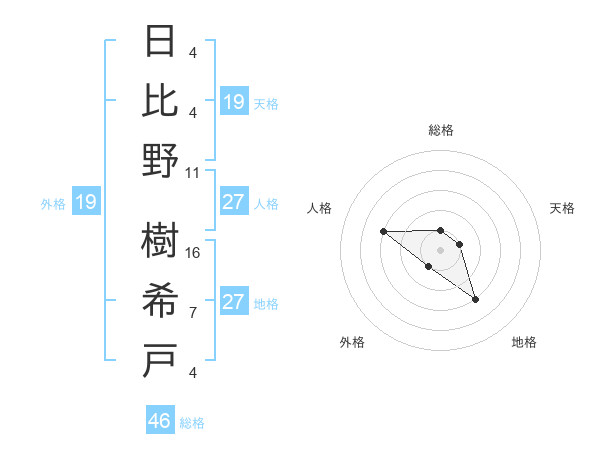 日比野 樹希戸さんを姓名の画数から五運を鑑定