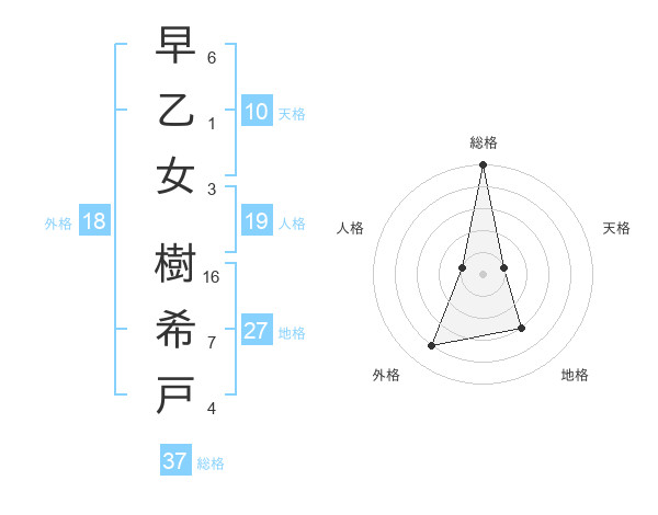早乙女 樹希戸さんを姓名の画数から五運を鑑定