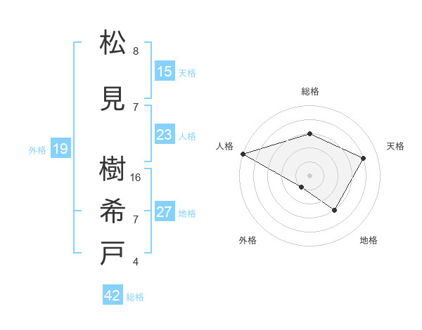 松見 樹希戸さんを姓名の画数から五運を鑑定