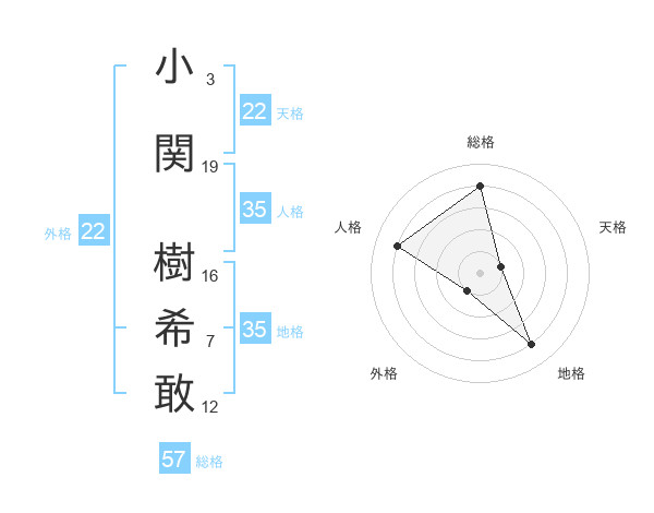 小関 樹希敢さんを姓名の画数から五運を鑑定