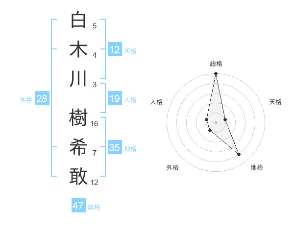 白木川 樹希敢さんを姓名の画数から五運を鑑定