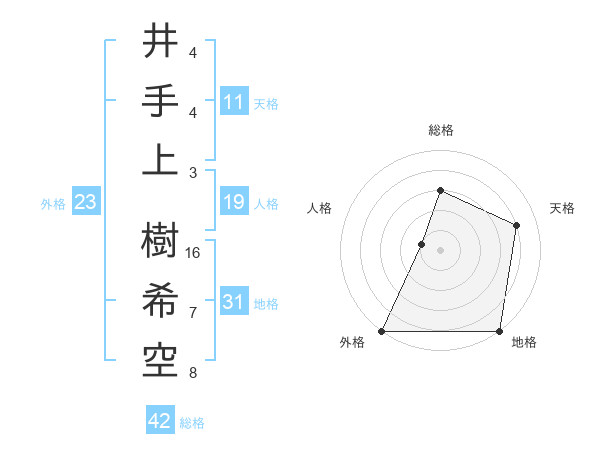 井手上 樹希空さんを姓名の画数から五運を鑑定