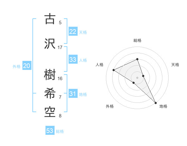 古沢 樹希空さんを姓名の画数から五運を鑑定