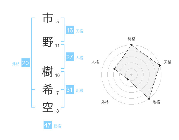 市野 樹希空さんを姓名の画数から五運を鑑定
