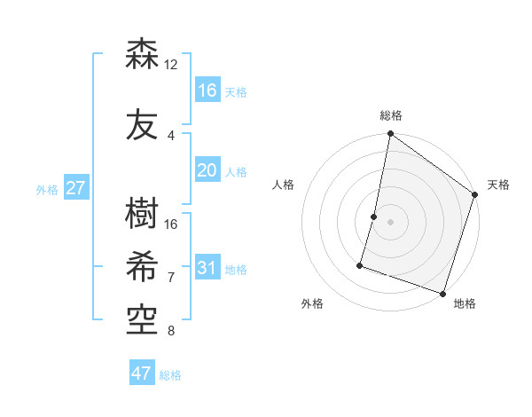 森友 樹希空さんの総格は47画の5点!