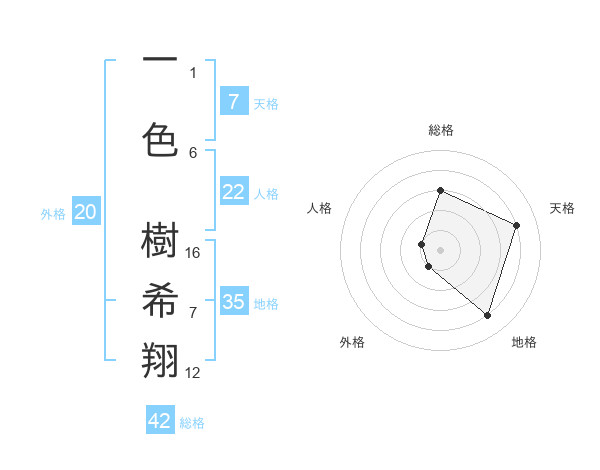 一色 樹希翔さんの外格は20画の1点!