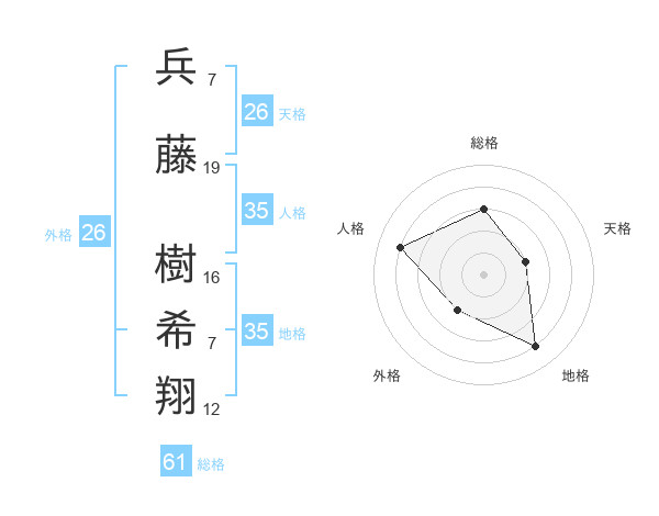 兵藤 樹希翔さんの総格は61画の3点