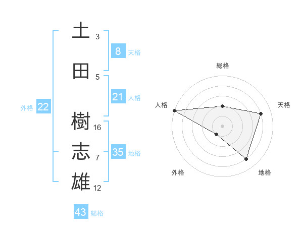 土田 樹志雄さんを姓名の画数から五運を鑑定
