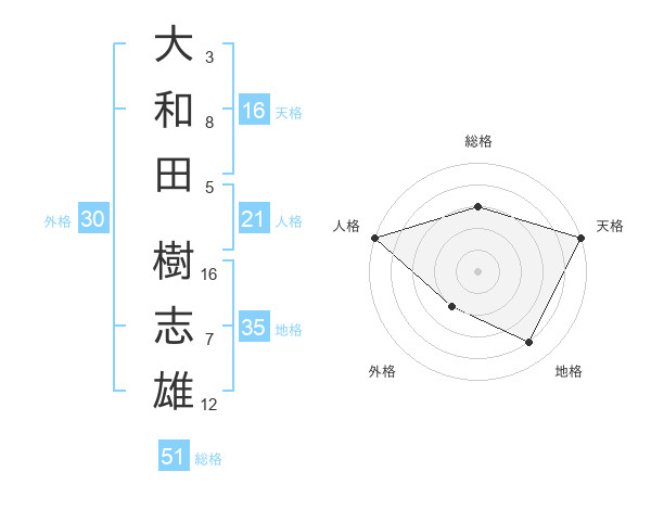 大和田 樹志雄さんを姓名の画数から五運を鑑定