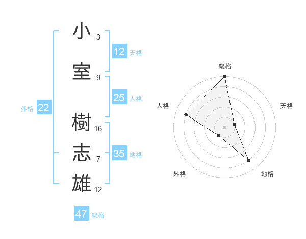 小室 樹志雄さんを姓名の画数から五運を鑑定