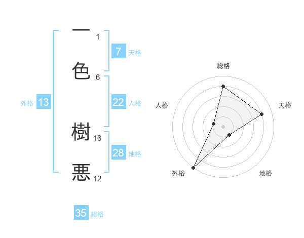 一色 樹悪さんを姓名の画数から五運を鑑定