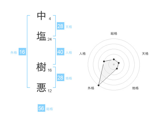 中塩 樹悪さんの総格は56画の1点!