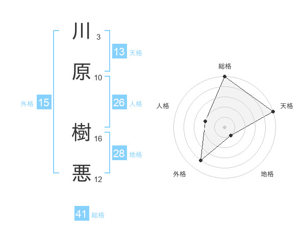 川原 樹悪さんを姓名の画数から五運を鑑定