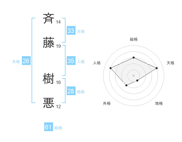 斉藤 樹悪さんを姓名の画数から五運を鑑定