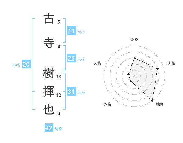 古寺 樹揮也さんの総格は42画の3点!