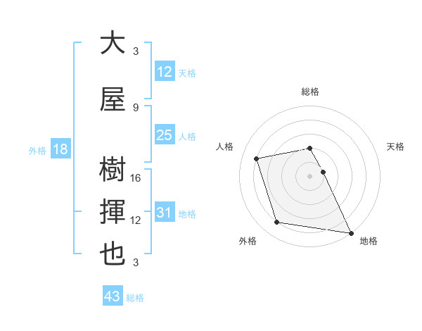大屋 樹揮也さんを姓名の画数から五運を鑑定