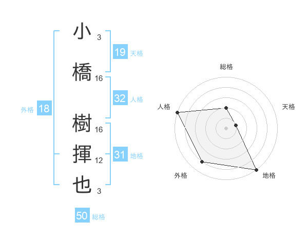 小橋 樹揮也さんの総格は50画の2点!