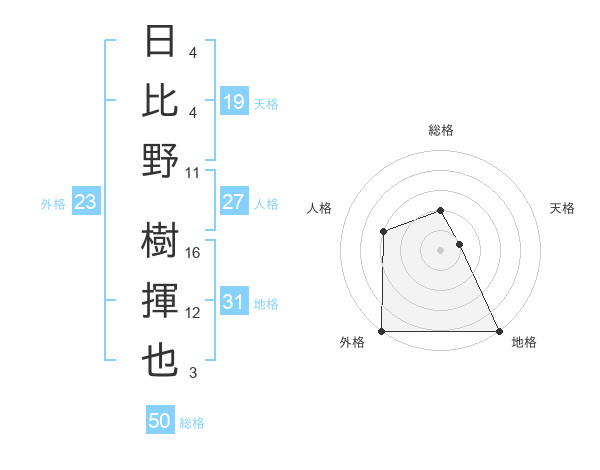 日比野 樹揮也さんを姓名の画数から五運を鑑定