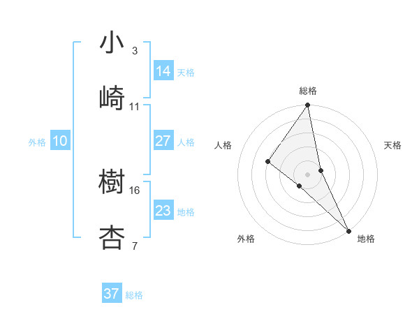 小崎 樹杏さんの総格は37画の5点!