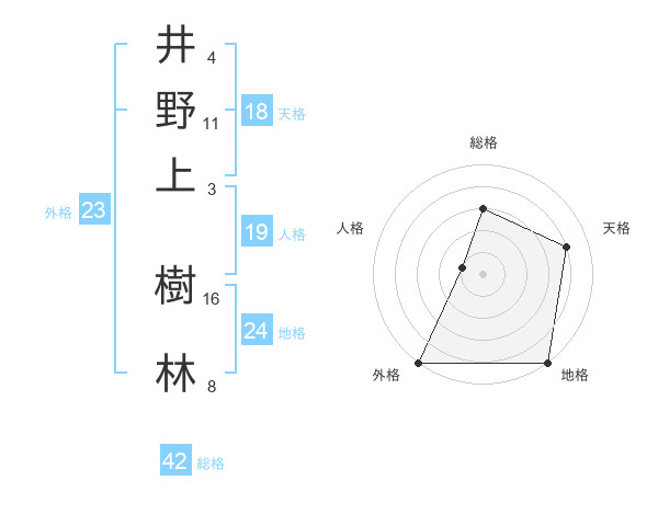 井野上 樹林さんを姓名の画数から五運を鑑定