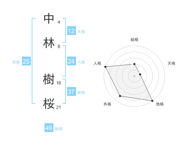 中林 樹桜さんを姓名の画数から五運を鑑定