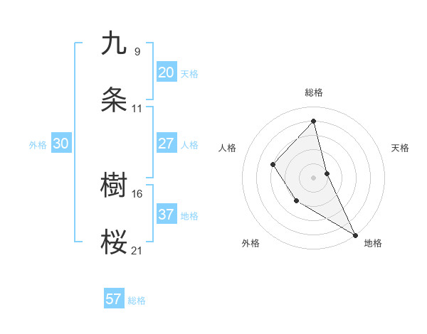 九条 樹桜さんを姓名の画数から五運を鑑定