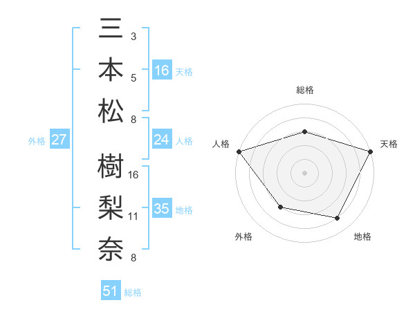 三本松 樹梨奈さんを姓名の画数から五運を鑑定