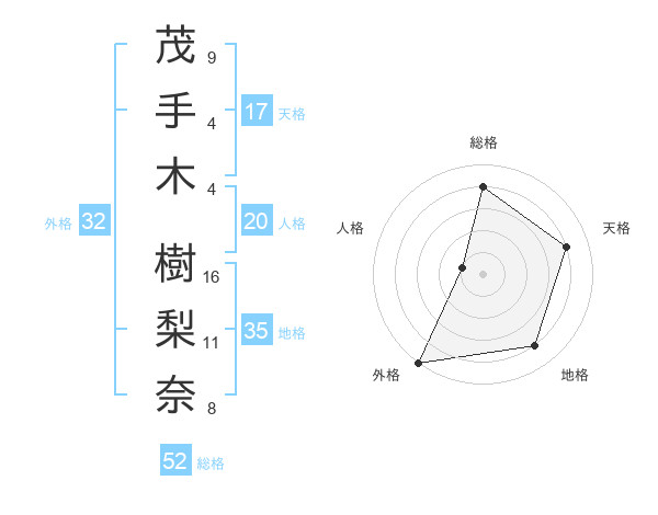 茂手木 樹梨奈さんを姓名の画数から五運を鑑定