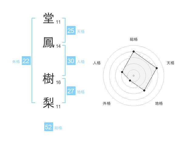 堂鳳 樹梨さんの総格は52画の4点!