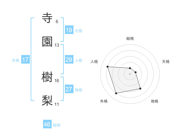 寺園 樹梨さんを姓名の画数から五運を鑑定