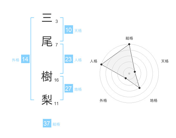 三尾 樹梨さんを姓名の画数から五運を鑑定