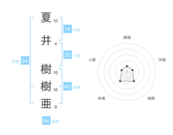 夏井 樹樹亜さんを姓名の画数から五運を鑑定