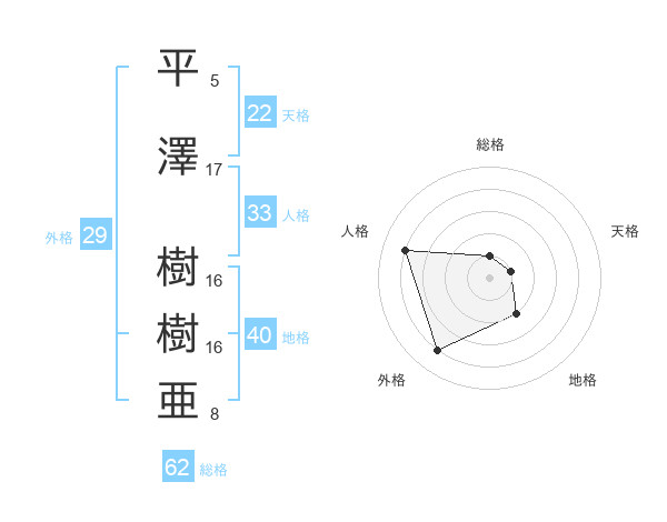 平澤 樹樹亜さんを姓名の画数から五運を鑑定