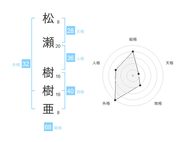 松瀬 樹樹亜さんを姓名の画数から五運を鑑定