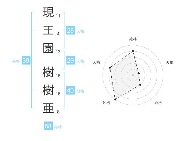 現王園 樹樹亜さんを姓名の画数から五運を鑑定