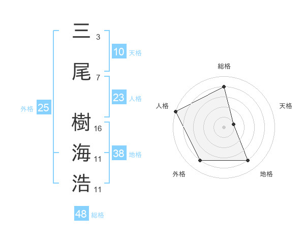 三尾 樹海浩さんを姓名の画数から五運を鑑定