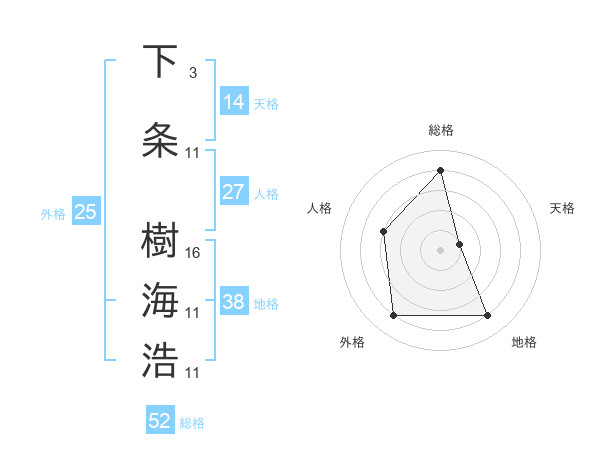 下条 樹海浩さんを姓名の画数から五運を鑑定