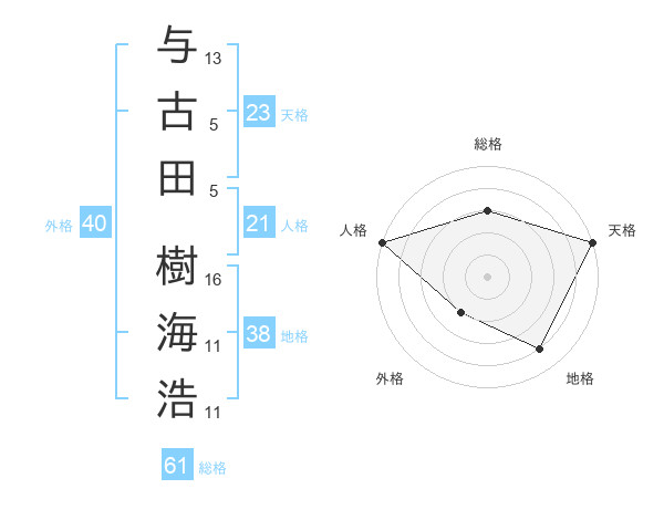 与古田 樹海浩さんを姓名の画数から五運を鑑定