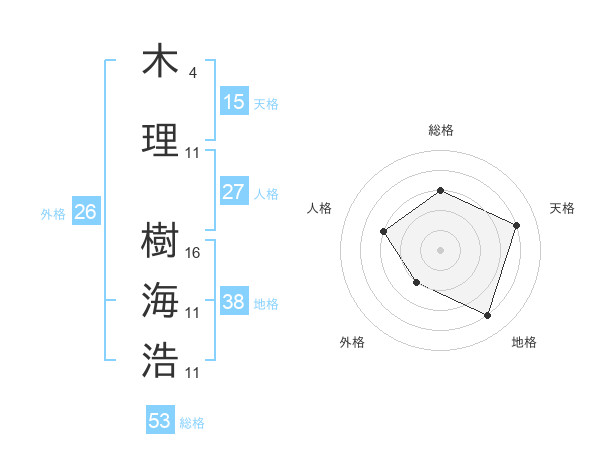 木理 樹海浩さんを姓名の画数から五運を鑑定