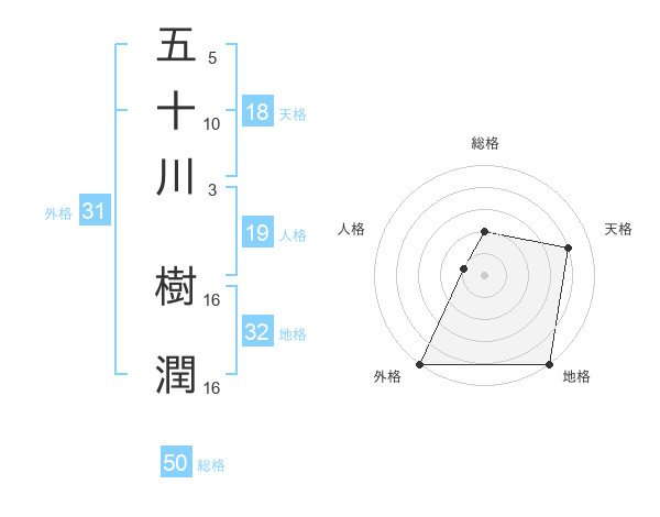 五十川 樹潤さんを姓名の画数から五運を鑑定