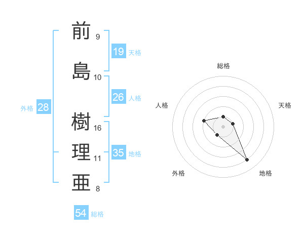 前島 樹理亜さんを姓名の画数から五運を鑑定
